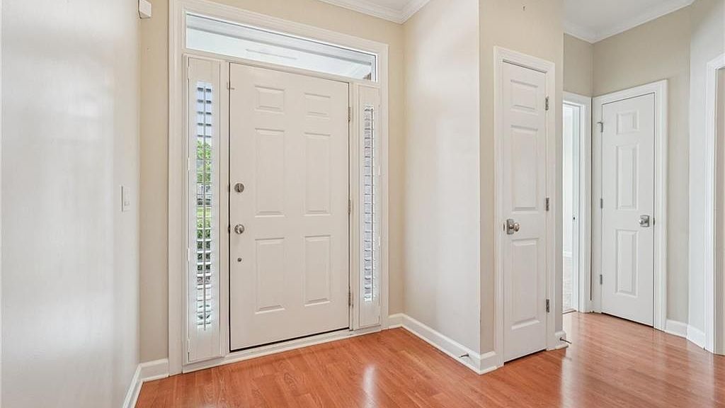 Your bedroom sanctuary features two windows that welcome gentle morning light and fresh air. Crown molding and quality baseboards add refined touches to this peaceful retreat. The walk-in closet provides plenty of storage, keeping your personal space organized and serene.