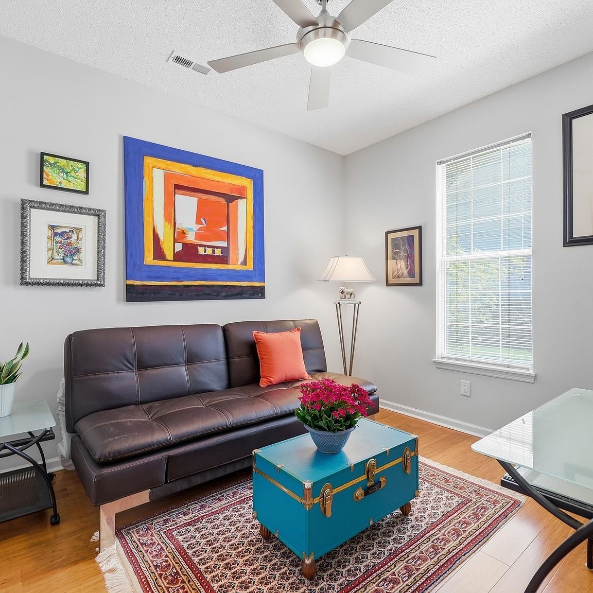 This culinary haven seamlessly blends rustic charm with modern functionality, featuring a stunning stacked stone backsplash in warm earth tones. The butcher block countertops bring natural warmth to the crisp white cabinetry, while a custom-built island with rich wood construction serves as the heart of the space, offering additional workspace and storage.