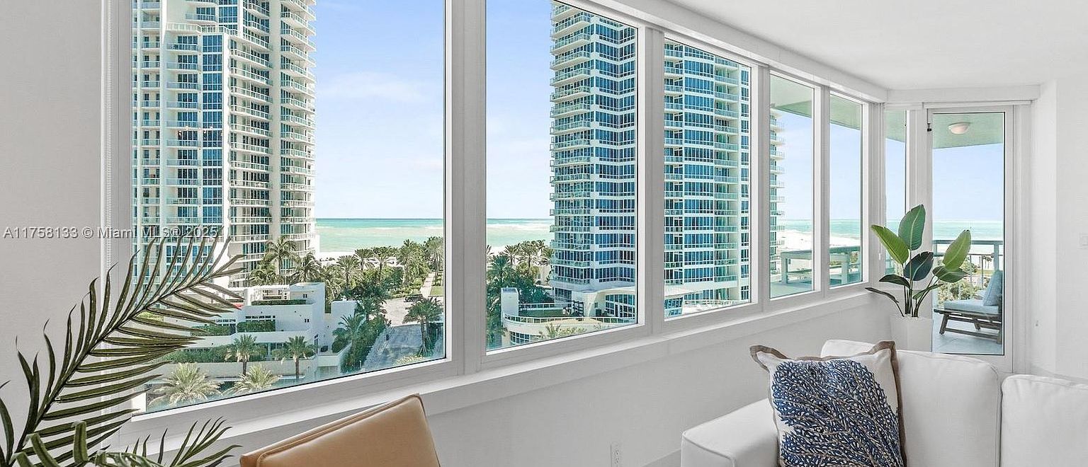 From this living area you look out over the beach and the bay, putting you right in the heart of Miami’s most exclusive beachfront enclave while the neighborhood feels calm and walkable