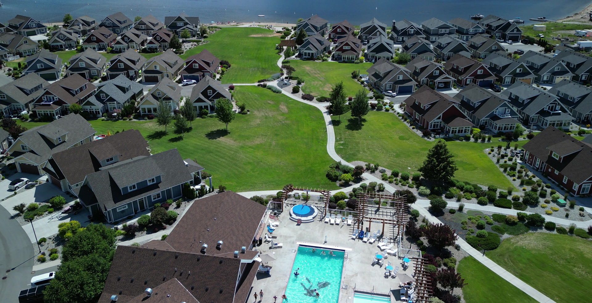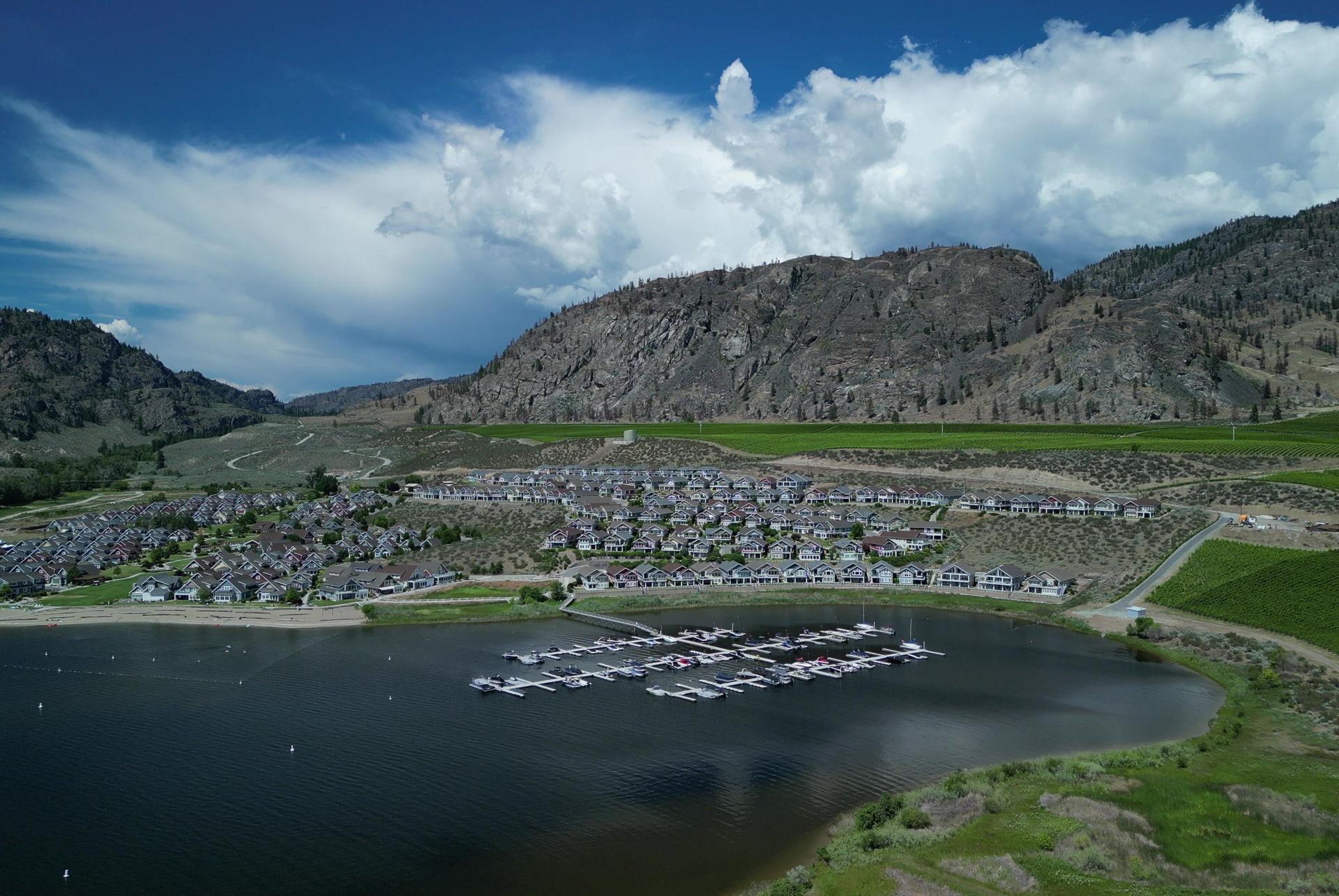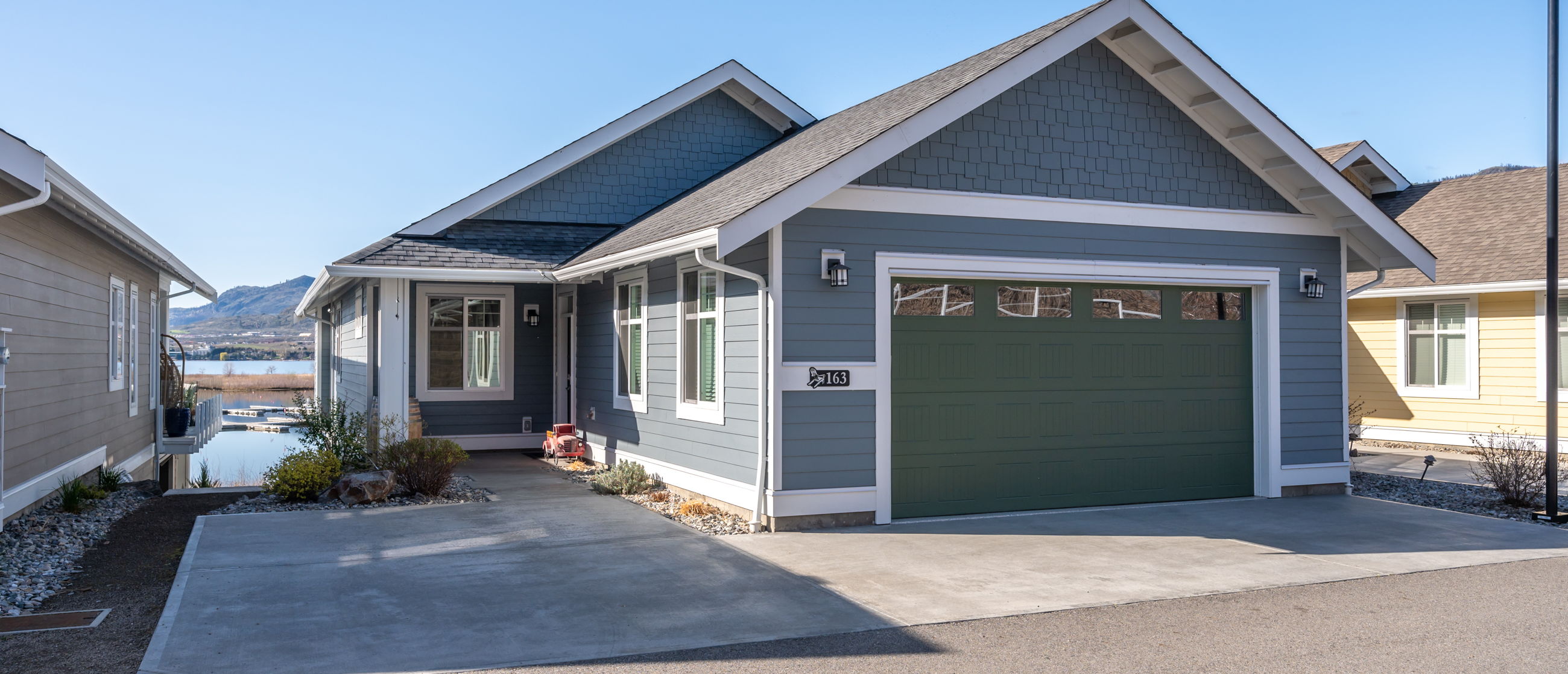 Soaring vaulted ceilings and a wall of triple windows frame sweeping lake and mountain vistas, filling the open-concept living space with natural light. Sliding glass doors extend the views outdoors, opening onto your private deck—perfect for morning coffee or relaxing evenings by the water.